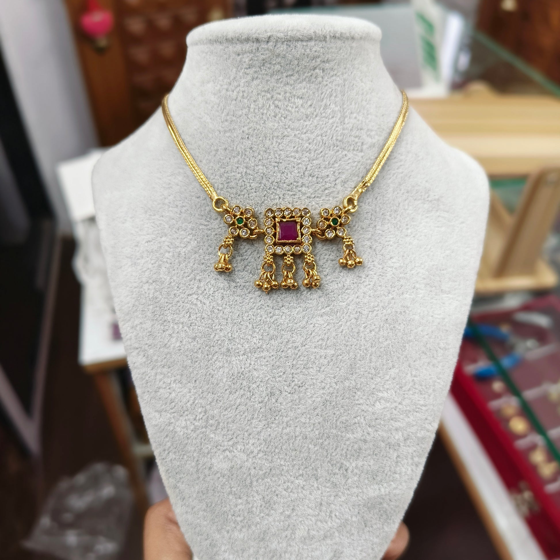 Beautiful nakshi Mini pendant with side patti type chain. Back side provided chain for adjustment.