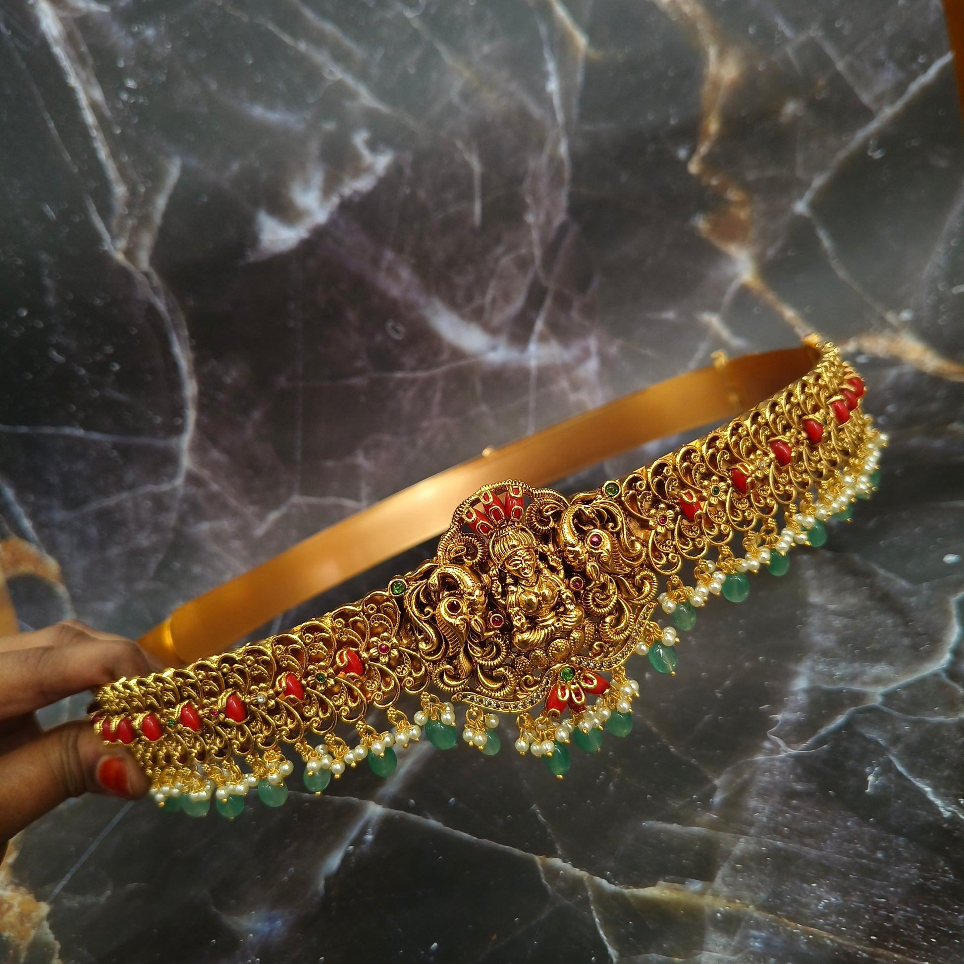 Beautiful nakshi Hipbelt with corals and contrast beading work. Now a days corals and contrast looks going to Trend