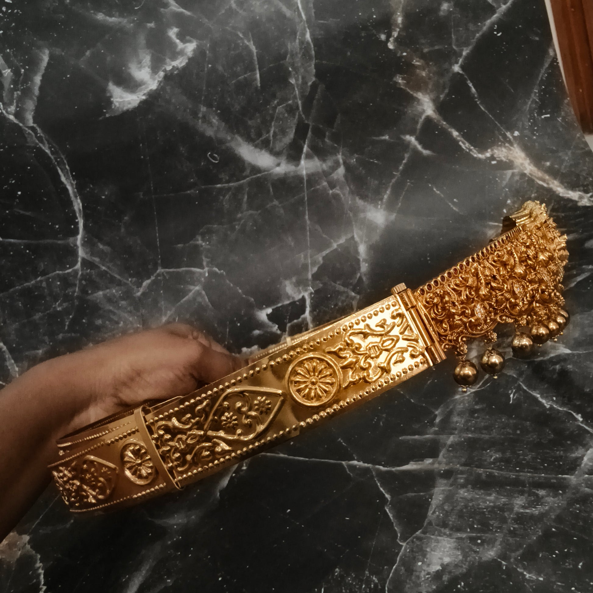 Beautiful carving designed Hip belt. You can detach back side belt for safe covering in boxes.