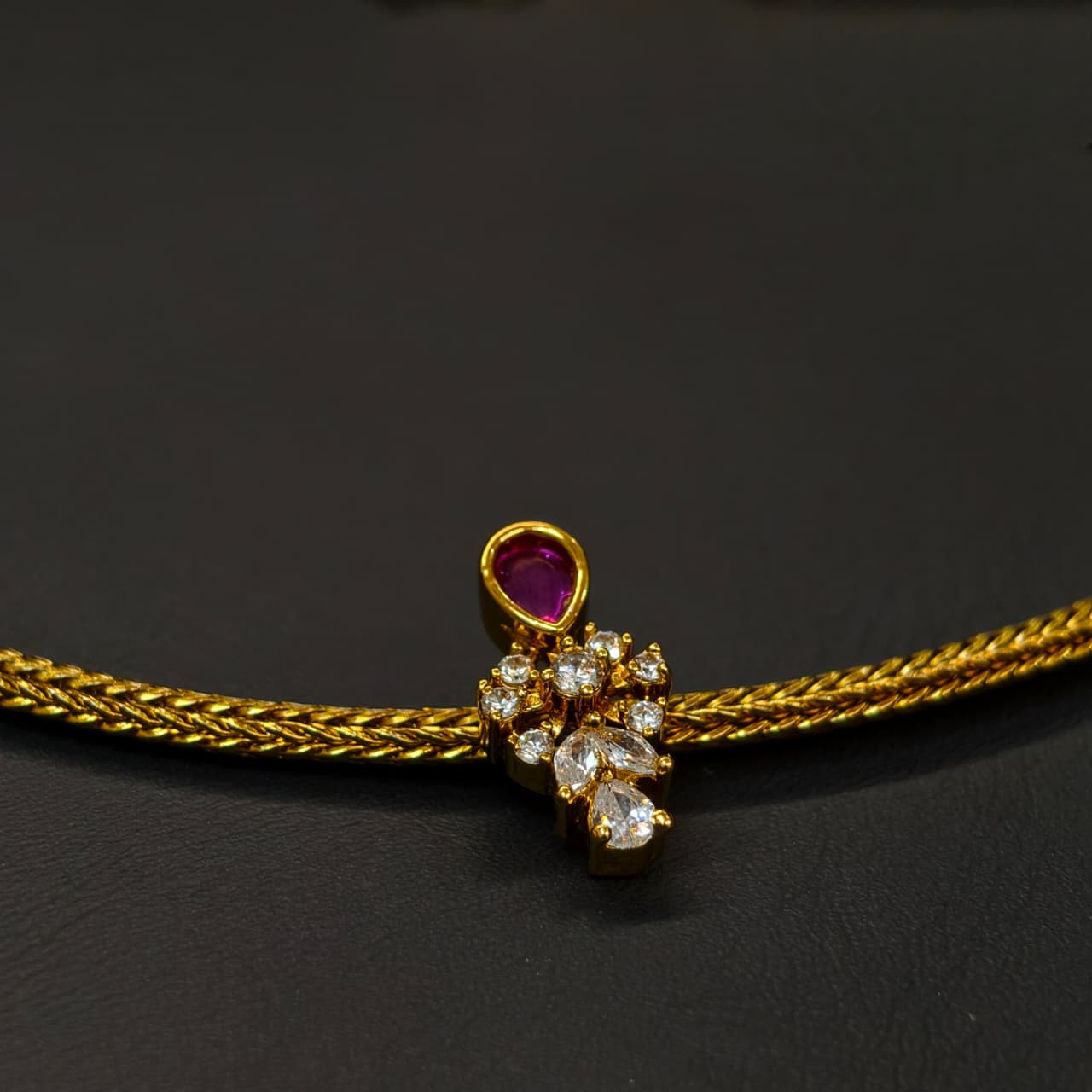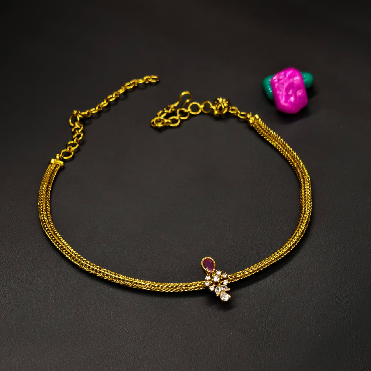 Pink & white stone combination pendant with plain nanu patti.traditional wear.for functions and puja's