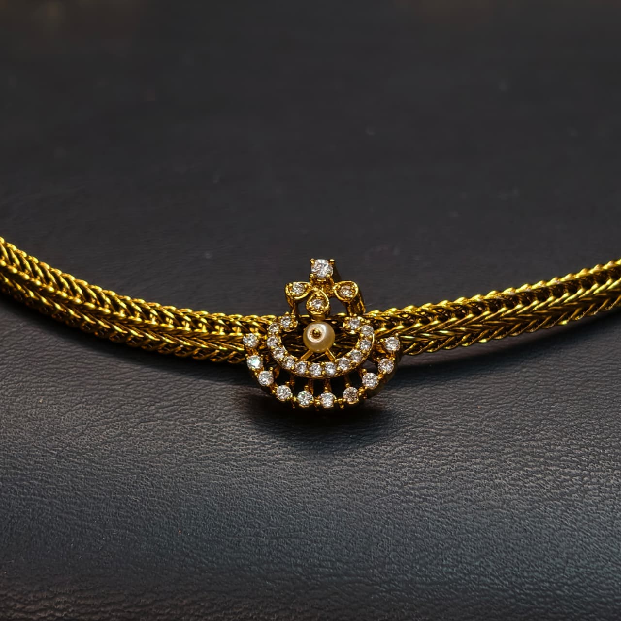 A beautiful white stone detachable pendant with plain nanu patti.something new.