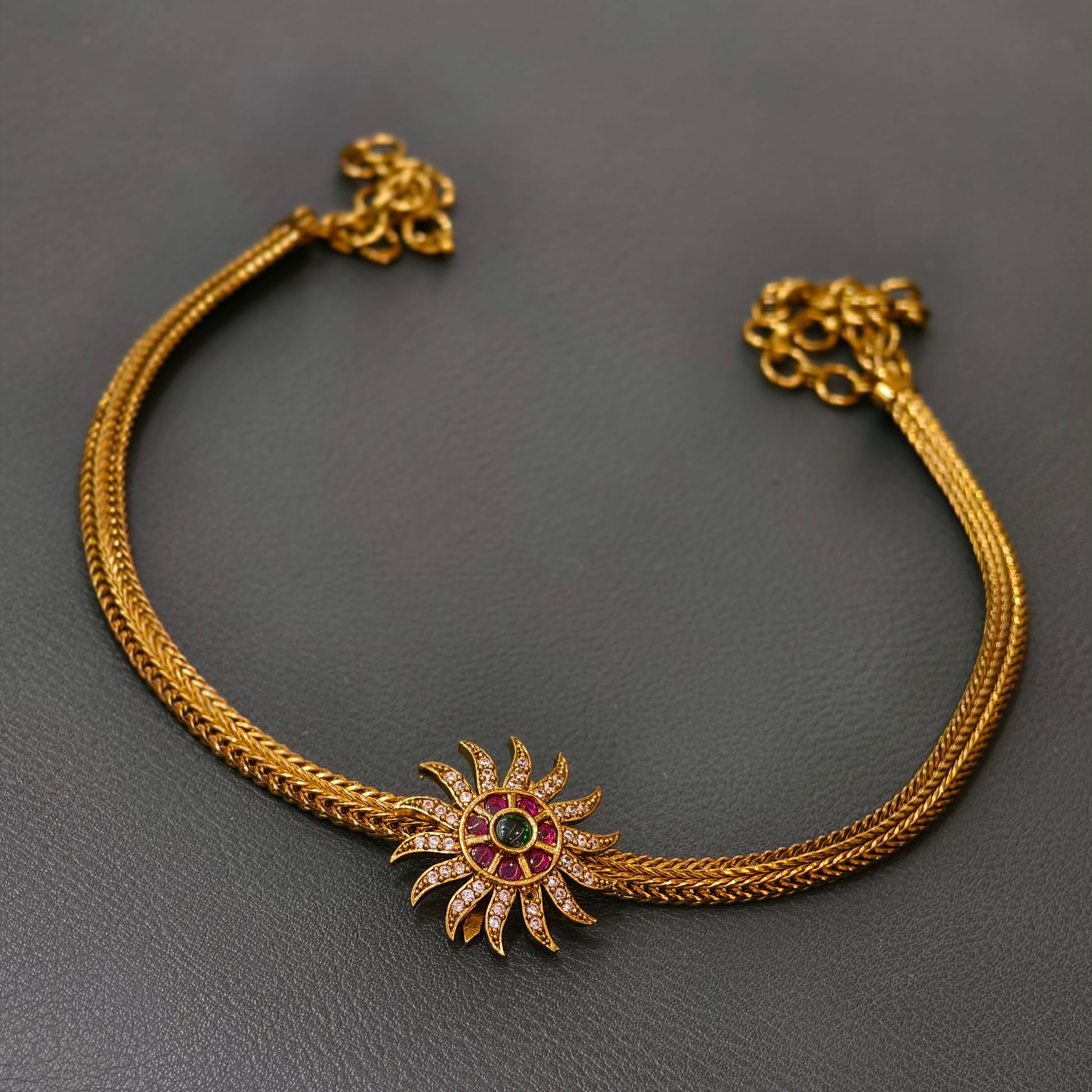 Nanu patti with flower pattern pendant green and pink stone combination.simple wear.