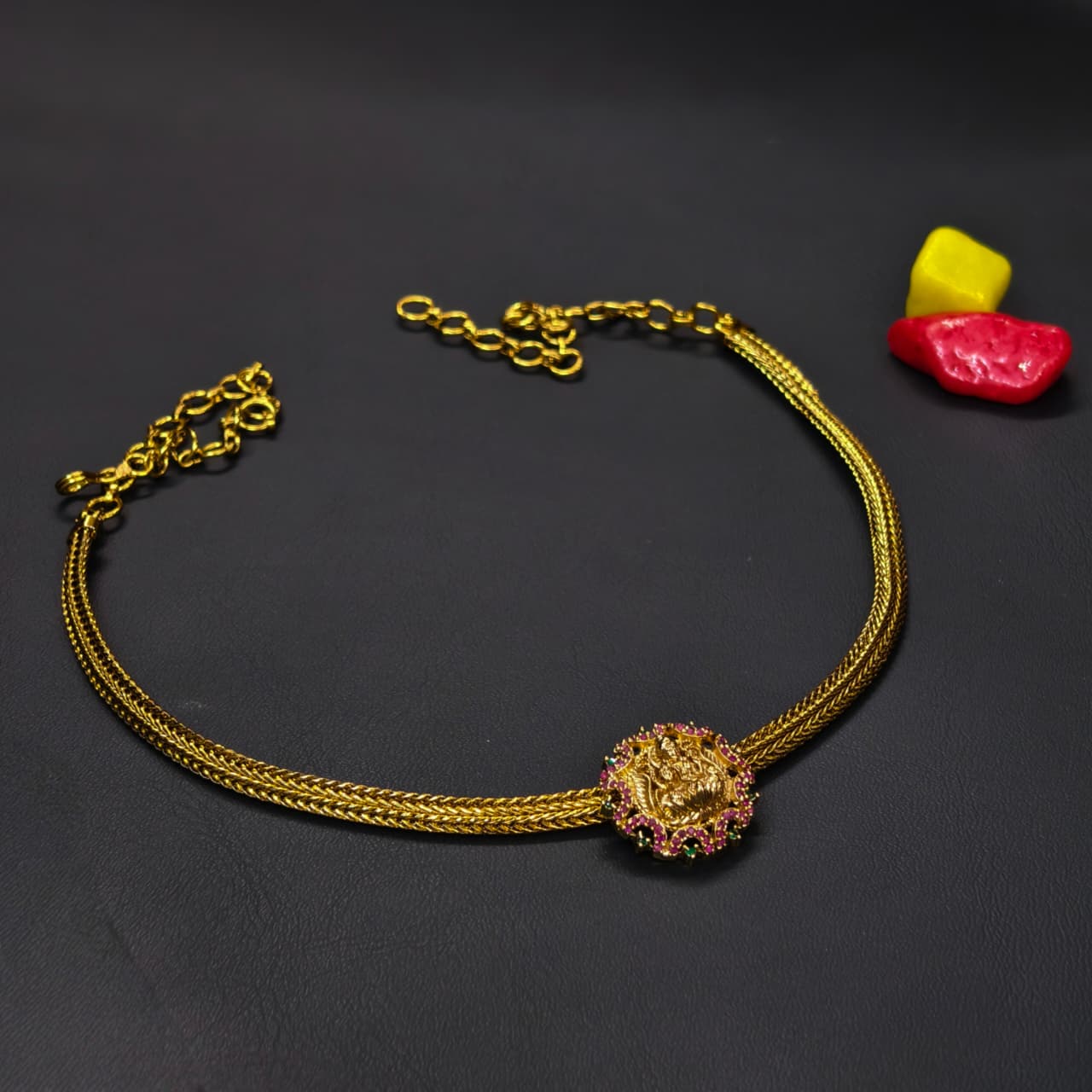 Nanu patti with Laxmi motive pink&green stone combination pendant.