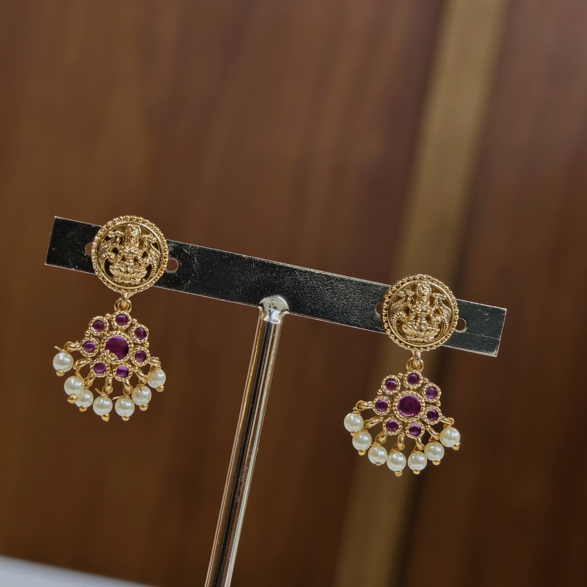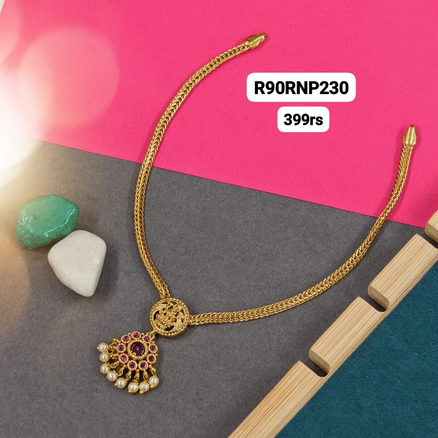 Pink stone nanu patti with Laxmi motive and with Earrings.budget friendly.. traditional wear.