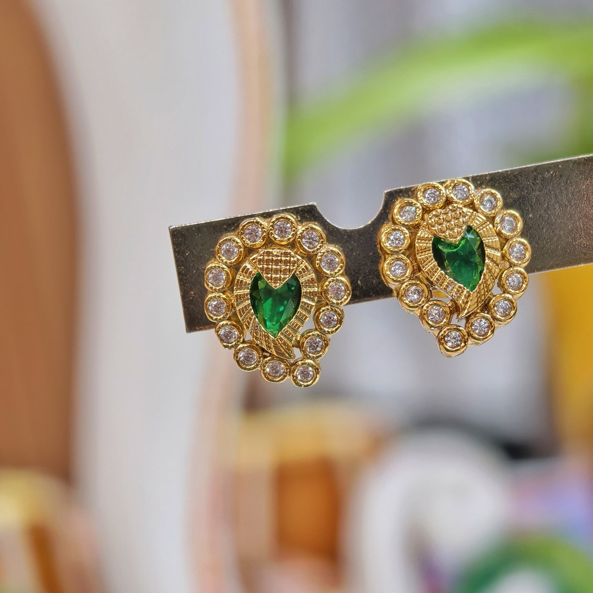 Nakshi finishing nanu patti with green stone mango pendant.and with earrings.back side thread.