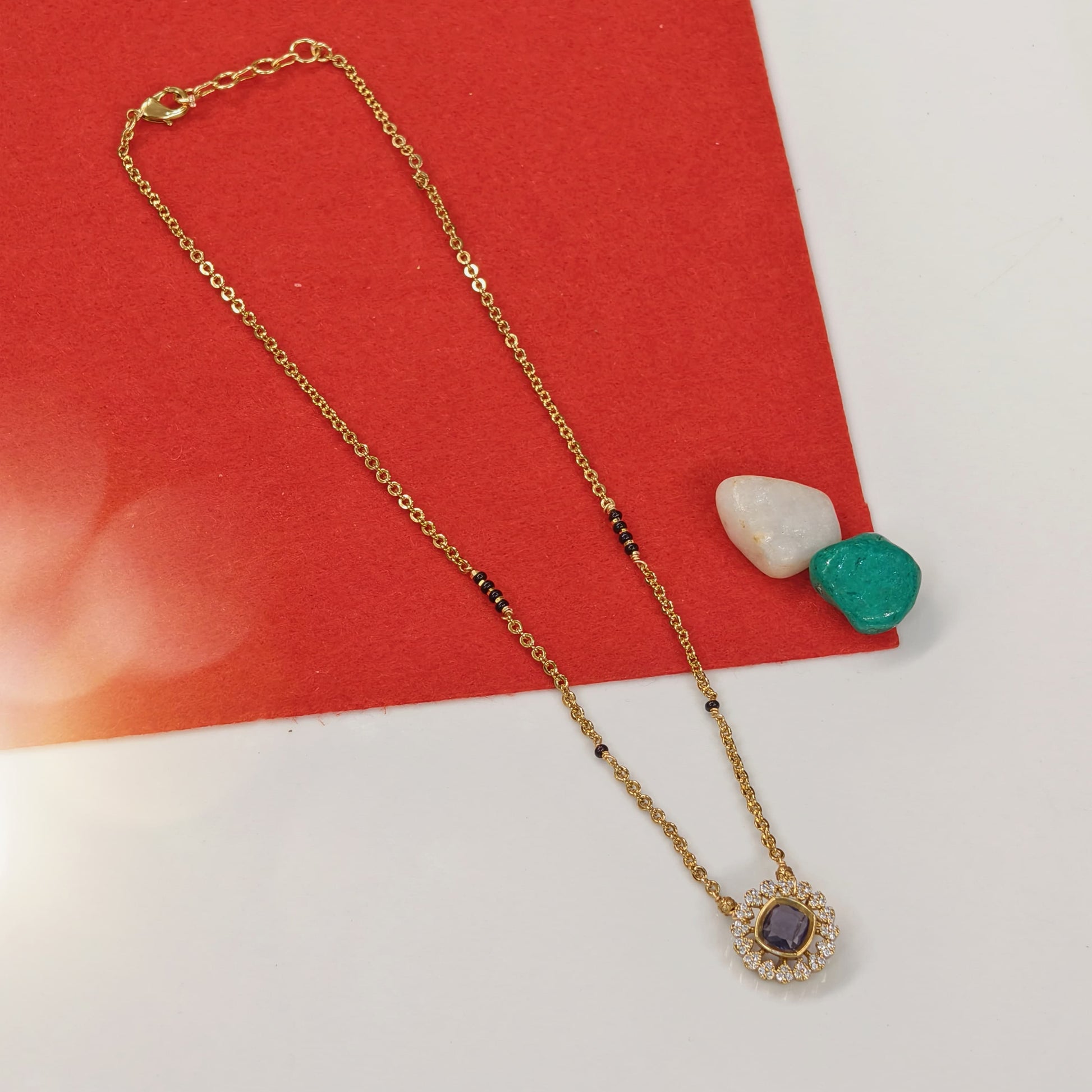 Short Black beads in the length of 16 inches.with voilet stone pendant.