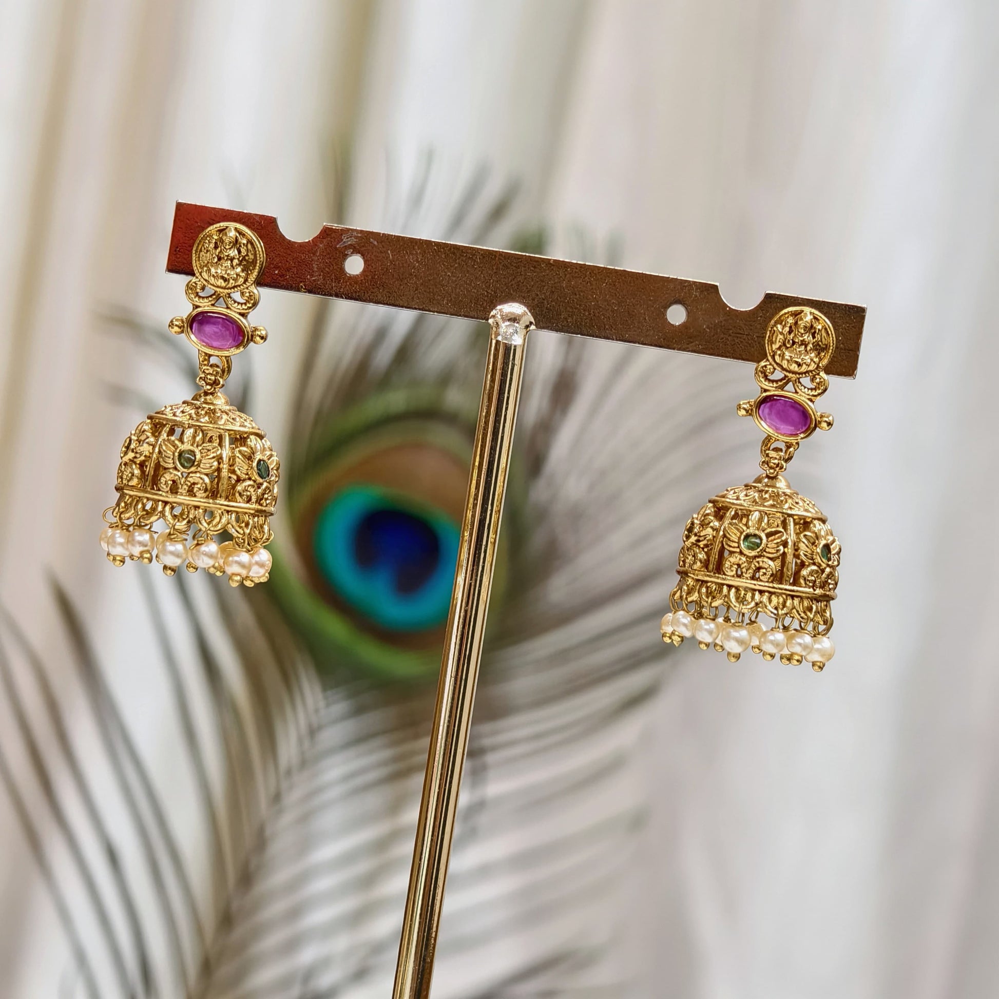Short neck set with real kempulu and pachhala combination.complete 3d figure with earrings and along with back chain.