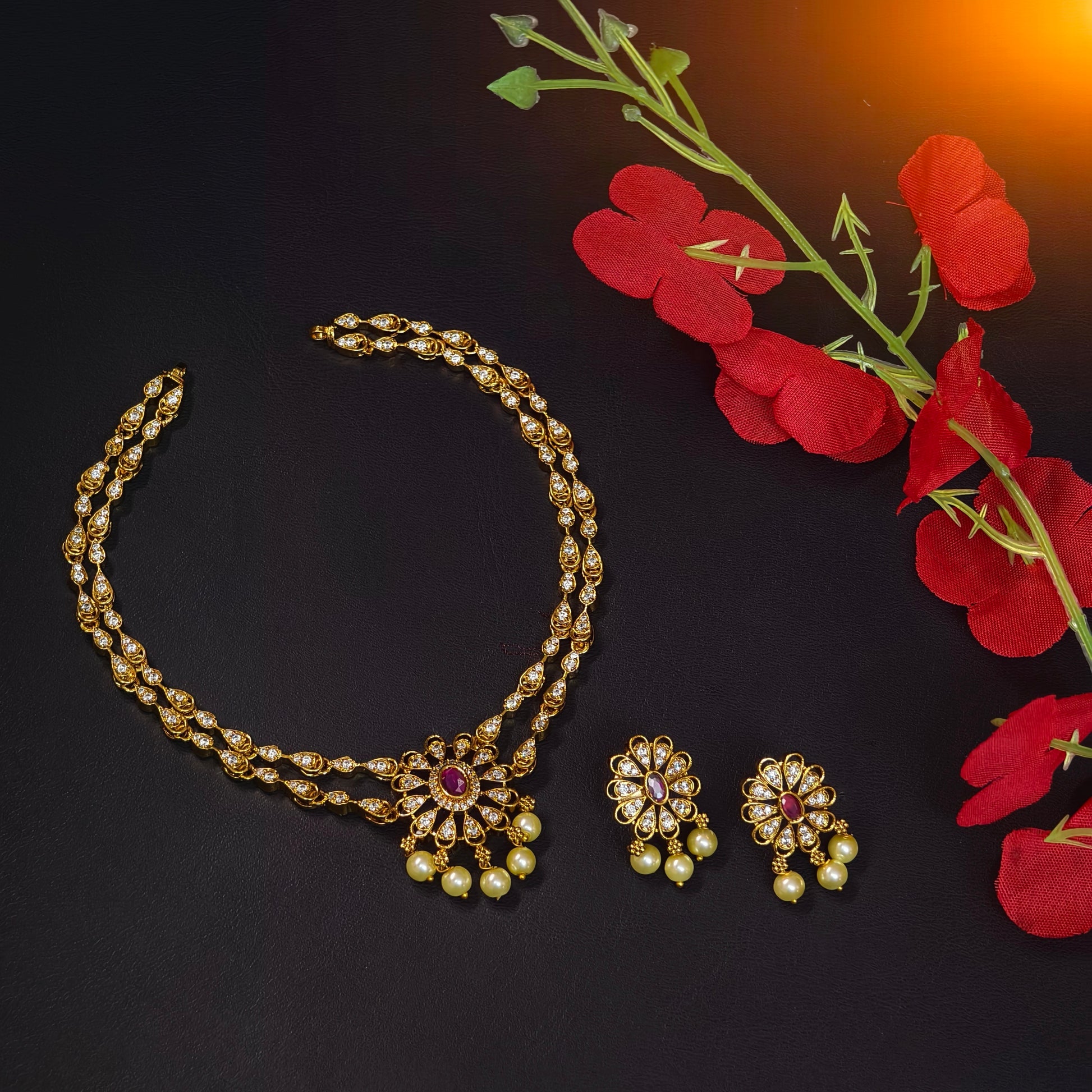Fancy kind of neckset(pink). 2 layers neck piece along with Earrings.mainly for college girls.