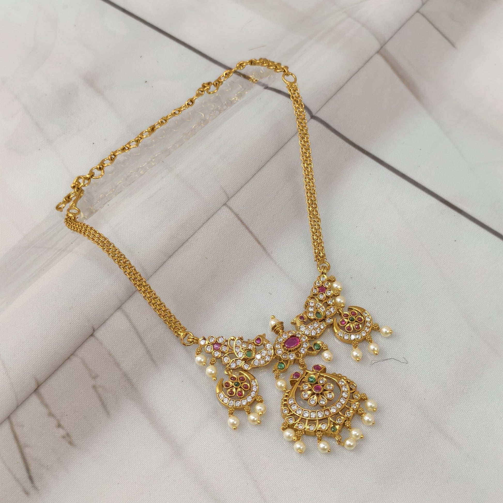 Antique finishing mini chocker.peacock pattern with green,pink and white stones combination.for function and weddings.