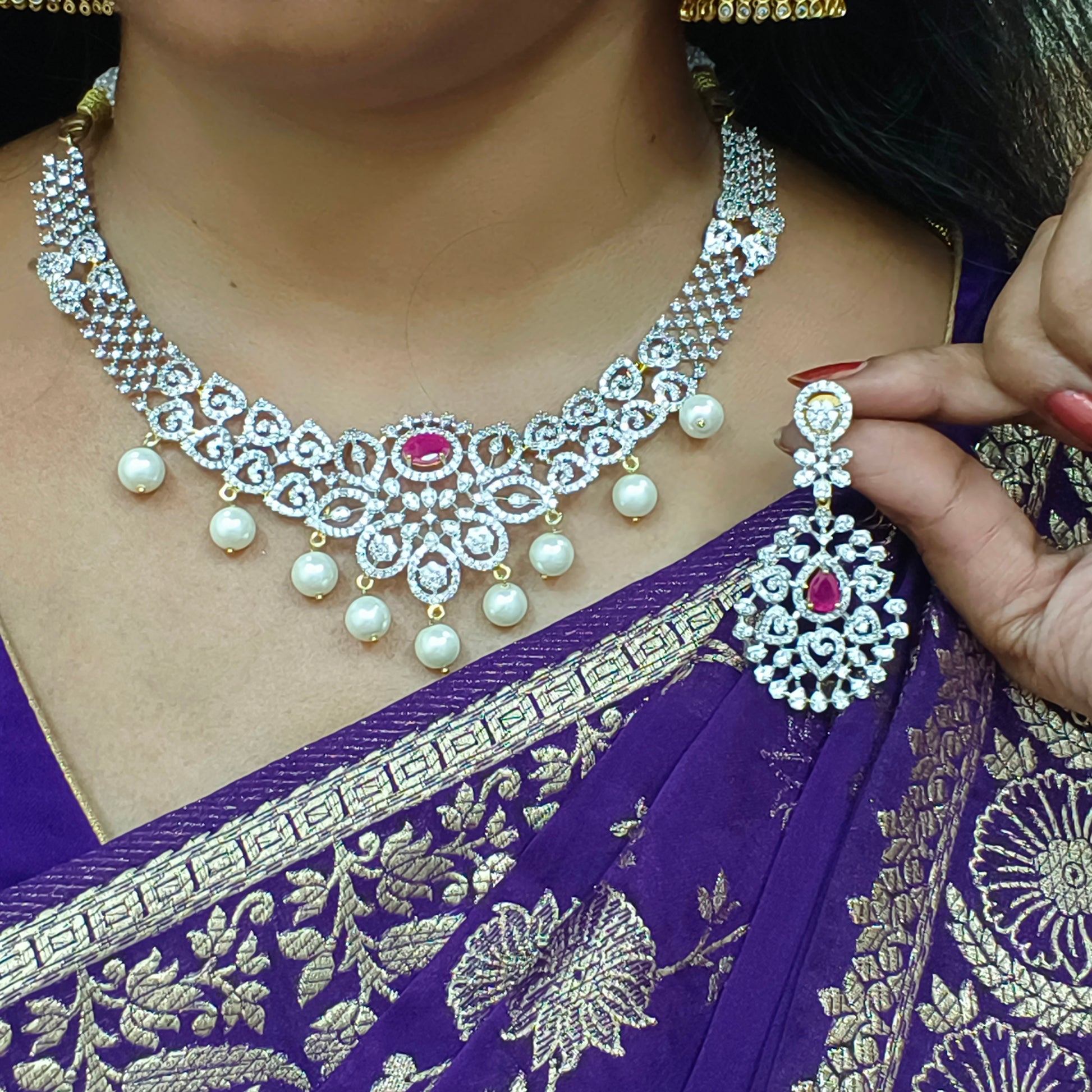 Diamond Neckset with pink stone combination. Elegant neckset. Budget range.
