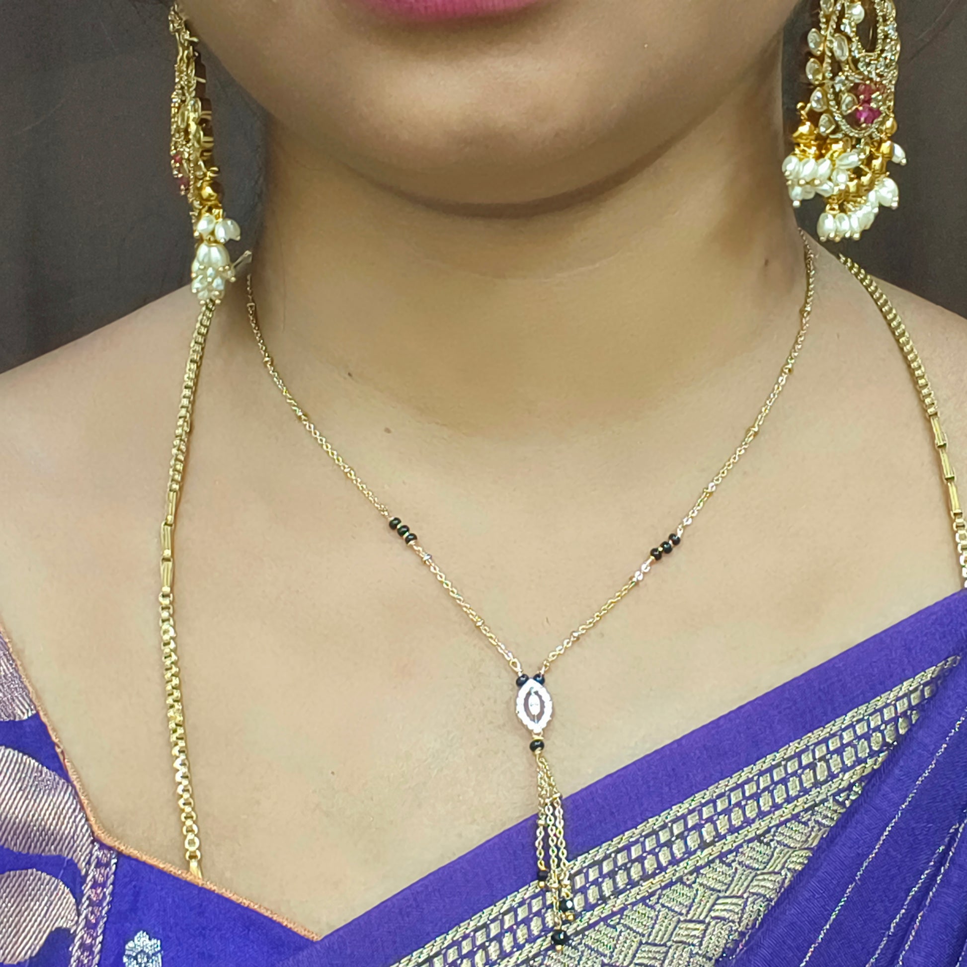 Diamond finished pendant with black beads. 16 inches length. Pendant with 2 lines of hangings