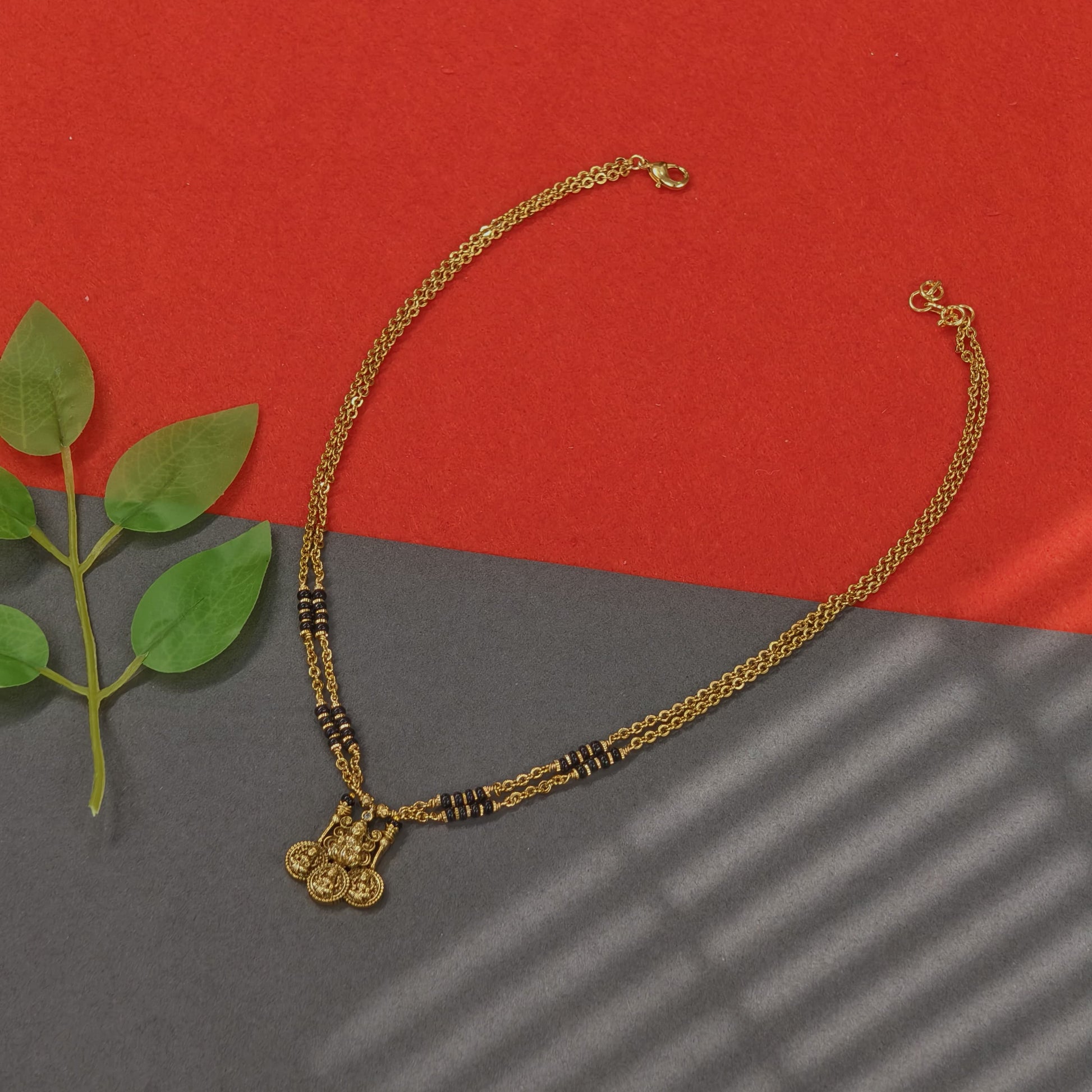 Beautiful parttern 2 lines black beads with Laxmi kasu pendant in nakshi finishing...