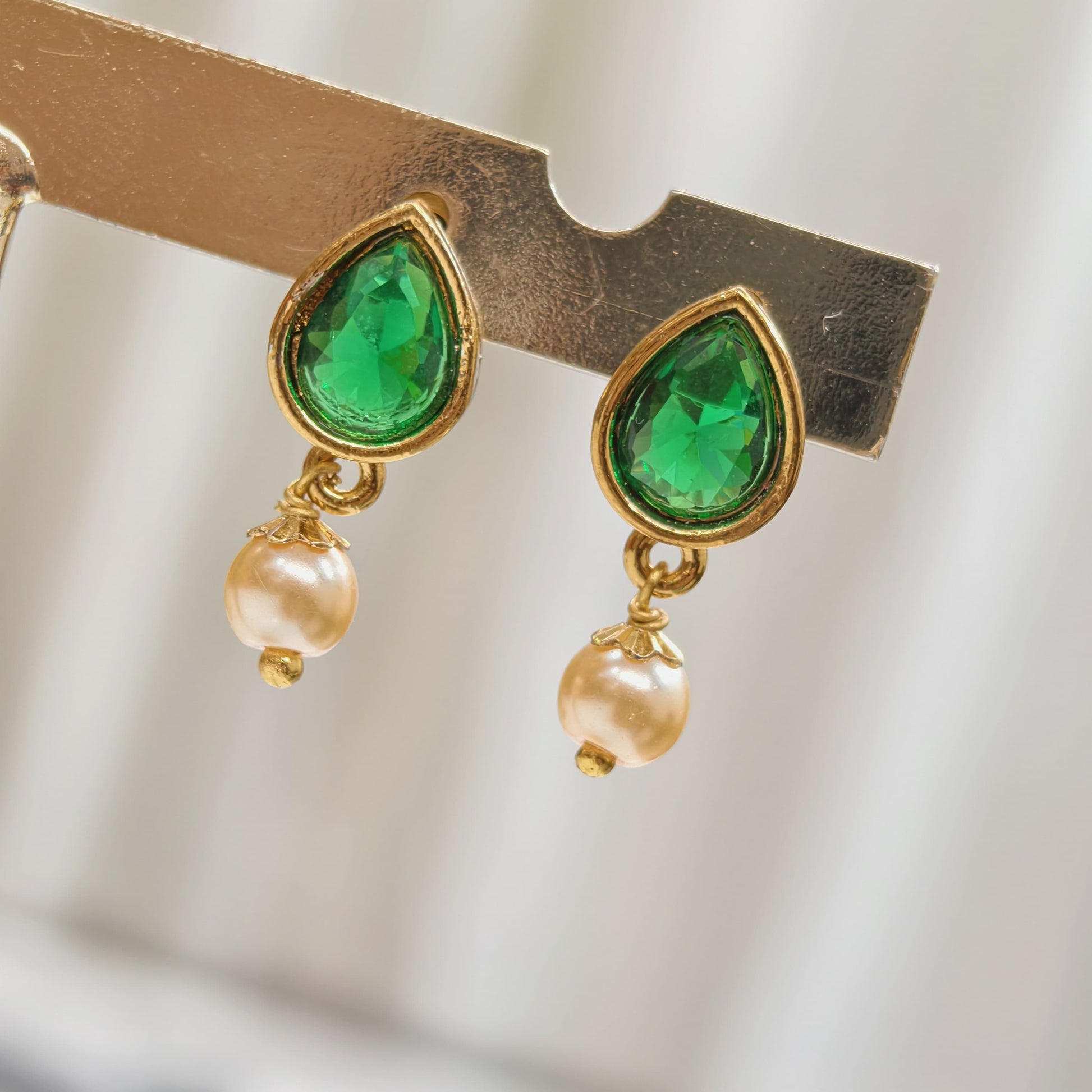 Fabulous π green 3d cutting stone neck set with Laxmi motives along with back chain &Earrings..