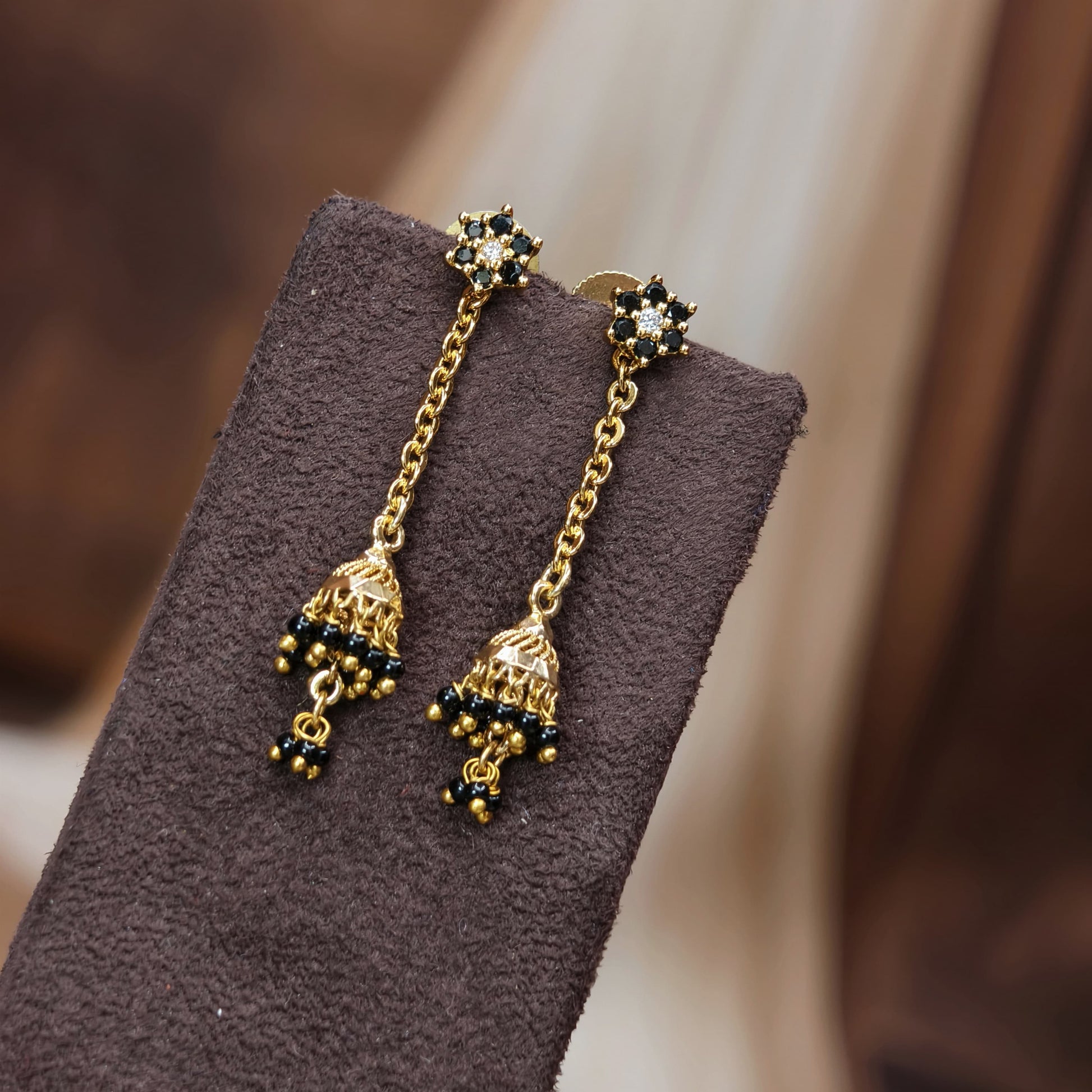 String earrings.Black stone stud with butta and black beads.perfect match for BLACK BEADS😍