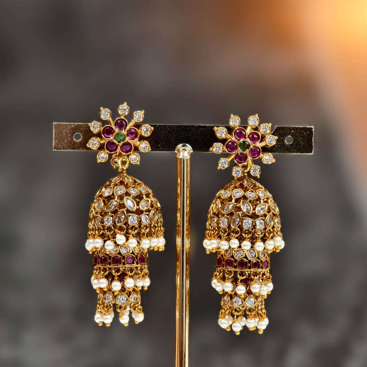 Ever green product triple butta earrings with detachable butta with medium size studs.