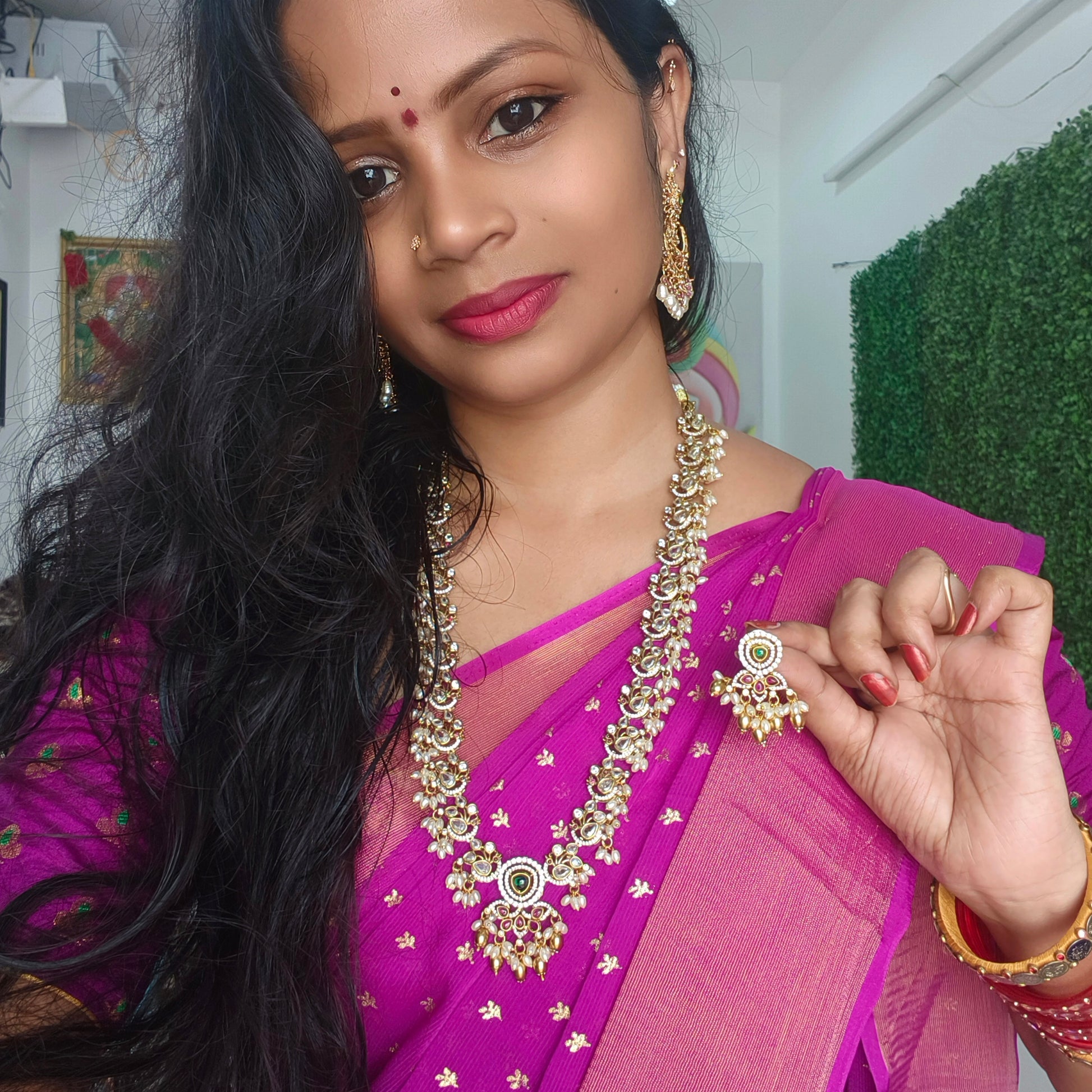 Uncut stones long haram.with beautiful beads work. Along with earrings