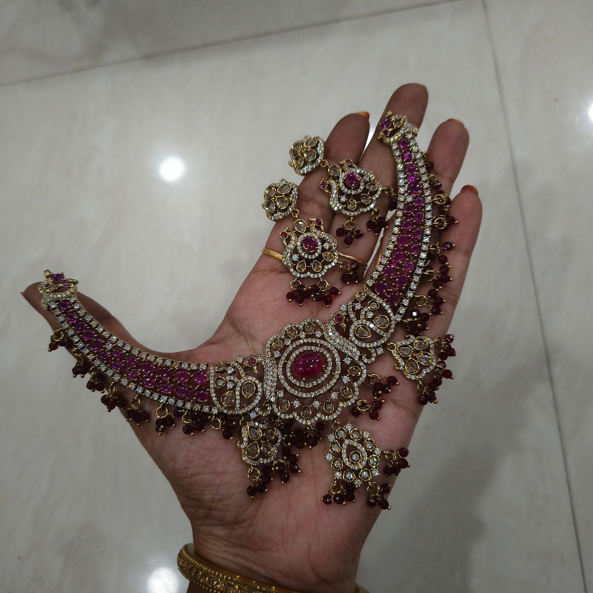 Victoria neckset with pink stones. Along with earrings.